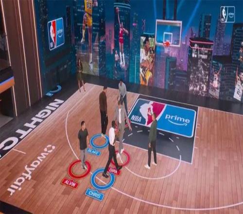 不仅全新打造了北美体育中最大的全LED演播室,更是邀请格里芬、纳什、诺维茨基、哈斯勒姆等几代球星坐镇,站上LED球场带来战术解析秀。节目现场的光影、互动与虚拟图像切换,画风科技感十足。
