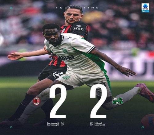 赛后根据统计,米兰在意甲的主场比赛中对阵萨索洛近几年依然处于劣势,本场比赛的平局让他们近6次意甲主场对阵萨索洛只取得1胜2平3负的成绩。