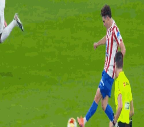 第23分钟,小西蒙尼禁区内倒地,主裁判没有判罚