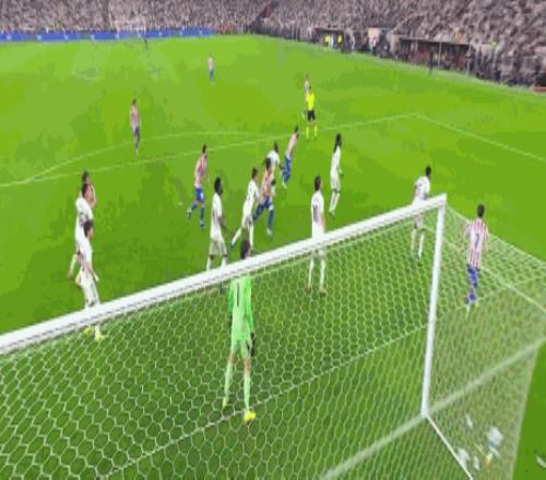 第84分钟,格列兹曼凌空侧钩射门,库尔图瓦将球扑出